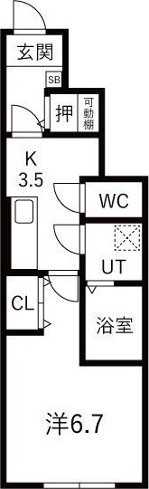 洋室 6.7帖/K 3.5帖 - 向き