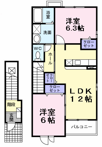 洋室 6.3帖/LDK 12.8帖 - 向き