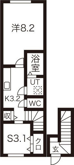 洋室 8.2帖/K 3.2帖/S 3.1帖 - 向き