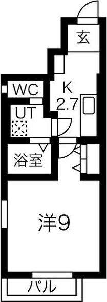 洋室 9.0帖/K 2.7帖 - 向き